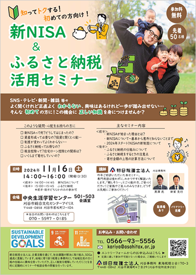 R6年11月16日(土)に「新NISA&ふるさと納税活用セミナー」を開催いたします。